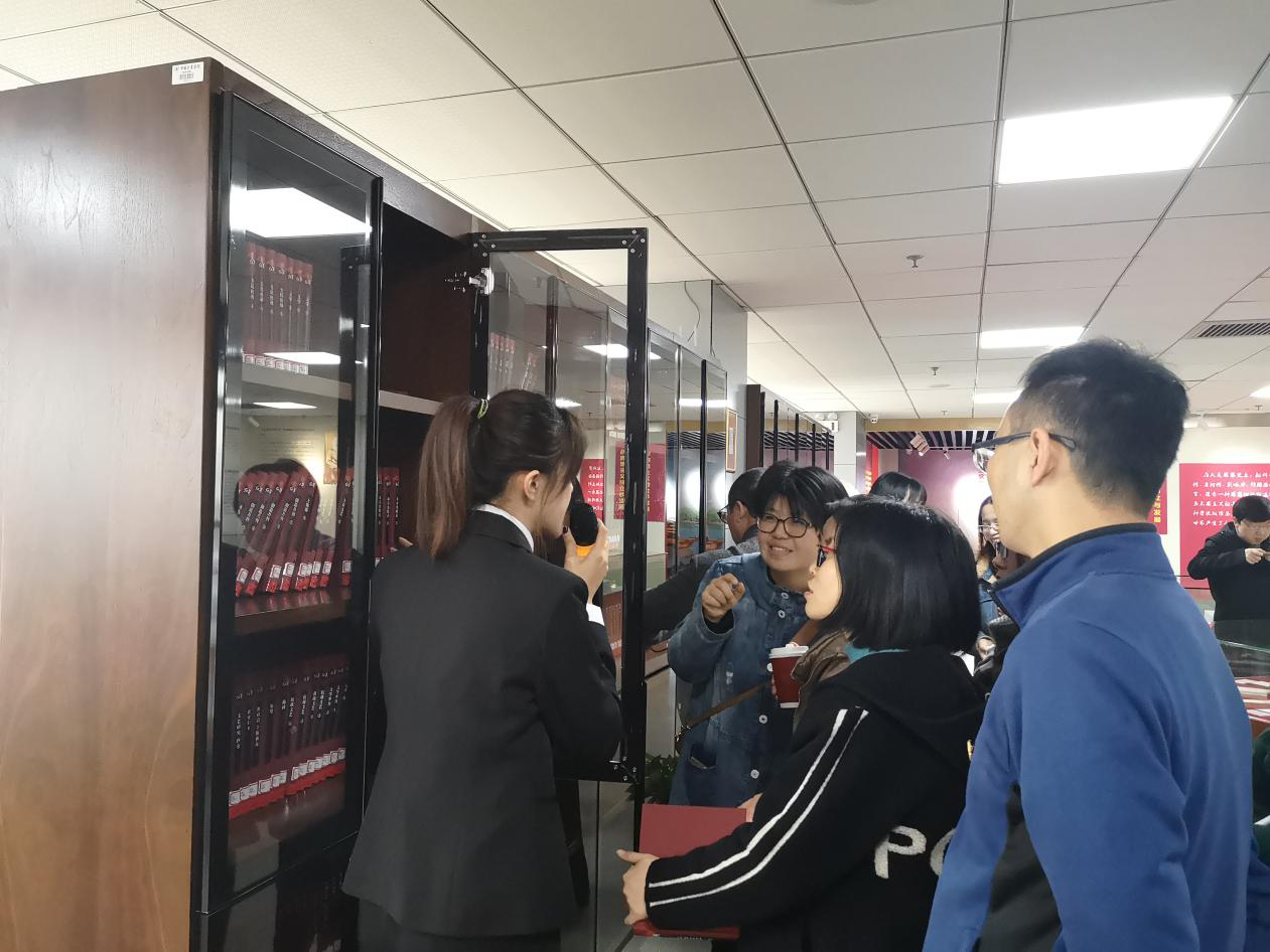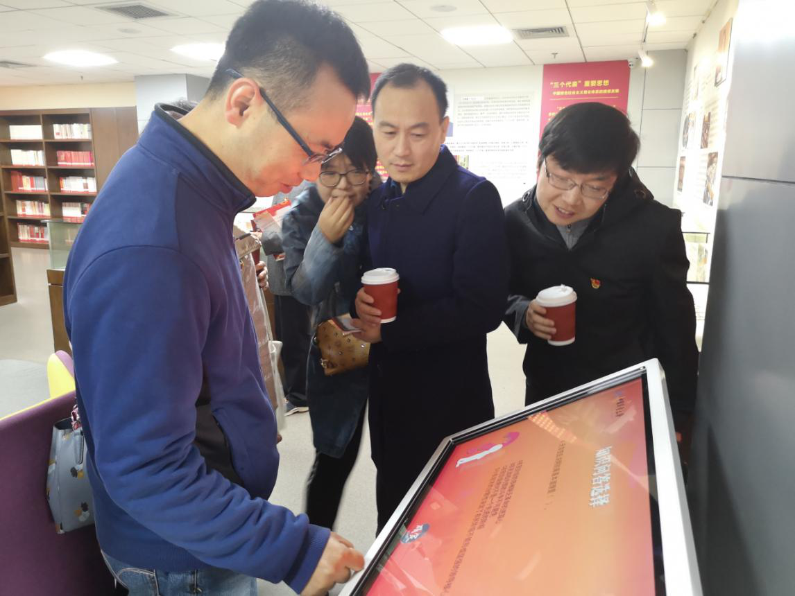 参观过程中,浙江商业职业技术学院的教师对中心藏书之丰富、品类之繁多赞不绝口,认真阅览中心藏书,积极参与互动问答,对互动一体机的学习模式大为称赞。在参观毛泽东思想展厅时,老师们对镇馆之宝——由我校老教师丁锡康捐赠的1945年版党章表示了极大兴趣。张国宏教授表示,中心的工作做得很细致有序,紧扣“不忘初心、牢记使命”主题教育,产生的影响是深远、深刻的。