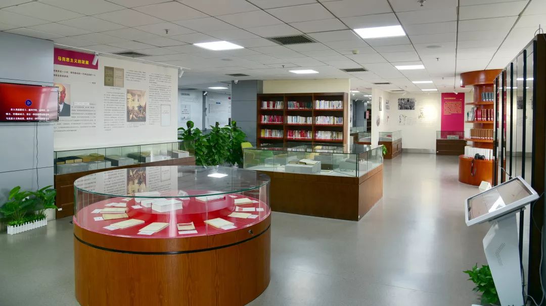 中心总面积1000多平方米,藏有《红藏》《马藏》等近万册马克思主义经典著作及文献、音频、视频资料,设有党群活动中心、学术沙龙室、珍品储藏室、入党宣誓厅、阅读讨论区、互动体验区等,是集马克思主义理论研究、现场教学、收藏展示、传播宣传、阅读研讨和党团活动等为一体的多功能平台。