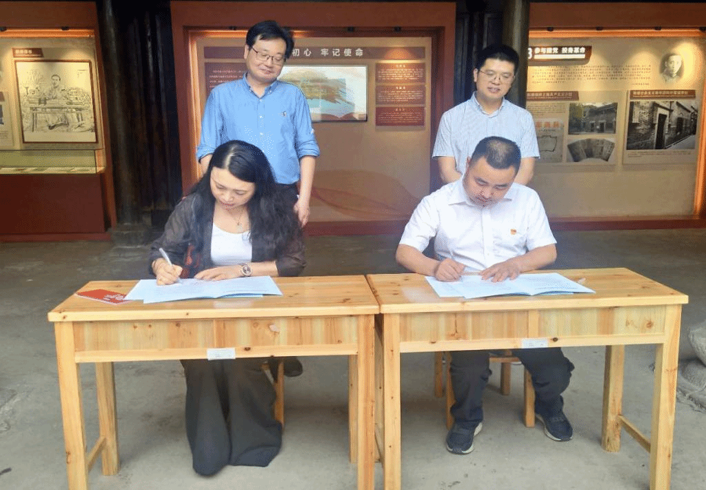 28日下午,考察调研组赴陈望道故居学习调研,举行中国计量大学与义乌市城西街道共建思想政治理论课实践教学基地签约暨授牌仪式。程刚副书记、市委宣传部副部长应文舜、城西街道人大工委主任方海明等出席签约仪式,兰婷院长、城西街道党工委委员黄颖代表双方签字。