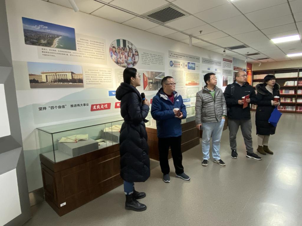 曾小保一行认真听取了研究生讲解员的讲解,参观了马克思主义中国化传播史展览和馆藏资料等。隋金波向客人介绍了我校马克思主义学院的学科建设、课程建设、队伍建设、科研成果等内容,双方就思政课教学改革、实践教学、课程考试等问题进行了深入交流。